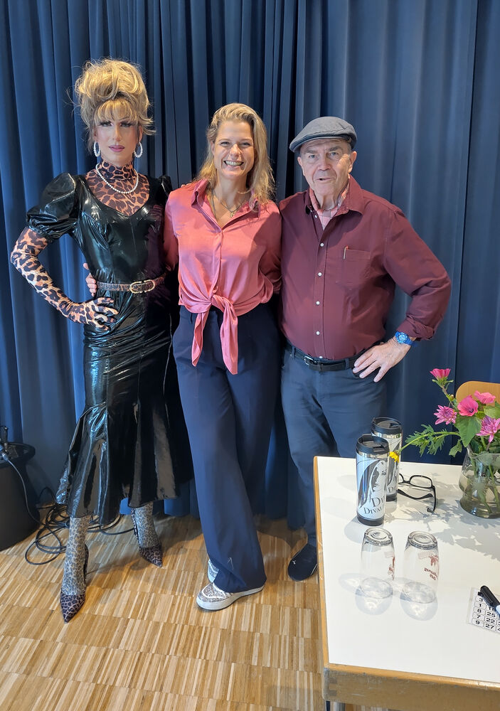 Mit einem bunten Programm begeisterte Sara Dahme am 5. Oktober die Gäste des SPD Kulturfrühstücks. Der Kultur Kiosk war von 2020 bis 2023 ein kleiner Raum im Züblin Parkhaus, der verschiedenen Künstlern einen Raum bot, aber schnell auch zu einem Raum für Begegnungen wurde. Zu Gast beim Kulturfrühstück waren der Lyriker Bernd „Harlem“ Fischle und Drag Queen Didi Divalicious, die beide im Kultur Kiosk aufgetreten sind. Bernd Fischle präsentierte einige seiner Gedichte. Dank der Moderation von Sara Dahme lernte das Publikum, dass er alle seine Werke von Hand schreibt und ein wahrer Wortkünstler ist. So ist nicht nur der Text seiner Werke relevant, sondern auch die Art und Weise wie diese Texte geschrieben sind. Bernd Fischle spielt mit Schreibweisen und Groß- und Kleinschreibung, um Teilwörter hervorzuheben und den Lesefluss zu bestimmen. Didi Divalicious nahm die Gäste im Anschluss mit zu zwei runden Drag Bingo. Entstanden ist das Drag Bingo damals, als Didi auf Sara Dahme zuging und sagte „Können wir im Kultur Kiosk nicht irgendwas mit Drag machen?“ Aus einem zuerst verdutzten Gesicht und der Frage was denn „irgendwas“ sein sollte entstand dann die Idee einer Bingo Veranstaltung. Das Bingo bietet einen Rahmen der zuallererst für gute Laune sorgt, aber gleichzeitig auch die Möglichkeit bietet über ernste Themen zu sprechen. So wurde das Drag Bingo im Kultur Kiosk für Aufklärungsarbeit genutzt – beispielsweise darüber, dass die Drag Kunst nichts mit der Sexualität zu tun hat. Das Drag Bingo startete im Kultur Kiosk und findet immer noch regelmäßig einmal im Monat statt. Es ist explizit jede und jeder willkommen. Das nächste Drag Bingo findet am 26. Oktober um 16Uhr mit der „Halloween Edition“ statt. Die Termine sind in allen Stuttgarter Terminportalen (Lift, rausgegangen.de, etc.) zu finden. Mit dem abschließenden gemeinsamen Tanz zu “I’m every woman” wird dieses Kulturfrühstück den Gästen sicher in Erinnerung bleiben.
