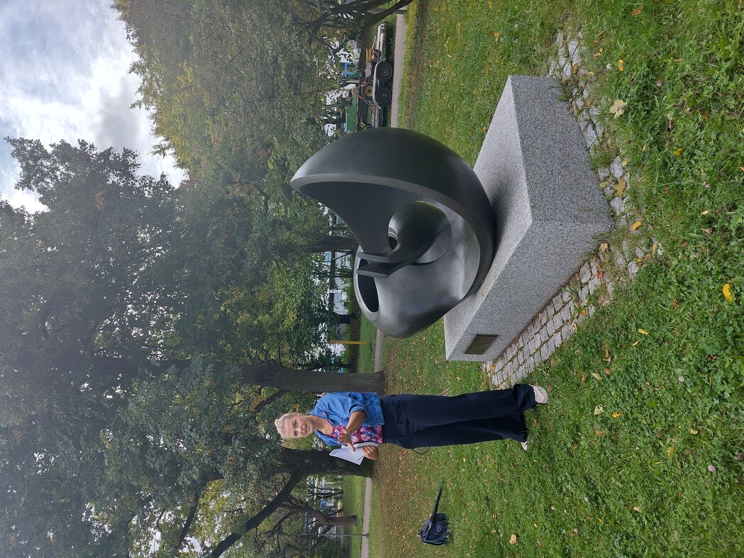 Beim nächsten Kunstwerk „Konkav-Konvex“ wurde zunächst erläutert, was Konkav bzw. Konvex bedeutet und mit „Eselsbrücken“ Hilfestellung zum Erinnern gegeben. Neben Information zum Künstler Herbert Gebauer wurden Details über Herstellung von Bronzeskulpturen erläutert. Nicht nur der Sachwert, sondern auch die Schwierigkeiten beim Bearbeiten des Materials ist beeindruckend. Auch die niedrige Sockelhöhe stellt das Kunstwerk in eine für Menschen angenehme Reichweite. Das nächste Kunstwerk „Durchbruch“, ebenfalls von Herbert Gebauer wurde anlässlich des Tunnels für den Stadtbahnbau in Sillenbuch angefertigt. Neben fachkundigen Erläuterungen wurde nebenbei erwähnt, dass Stuttgart mit mehr als 400 Kunstwerken im öffentlichen Raum unter den Städten mit der meisten öffentlichen Kunst ist. Und das ist Kunst zum Anfassen - es ermöglich uns durch Greifen das Begreifen. Natürlich verführt das auch dazu sich selbst zu „verewigen“. Das keinesfalls neuartige Phänomen sehen wir heute häufig durch Graffiti, Aufkleber oder Einritzungen etc. auf öffentlichen Kunstwerken. Das Entfernen verschlingt sehr viel Geld, das anderweitig besser eingesetzt werden könnte. Sara Dahme wies auch auf die Bedeutung von Kunst hin. An kritischer Kunst erkennt man einen freiheitlichen Staat. Autoritäre Regierungen reglementieren sie und lassen nur genehme Kunst zu. Sara Dahme warnte davor, in wirtschaftlich schwierigen Zeiten an der Kunst zu sparen nur weil es dort am einfachsten scheint. Der Spaziergang endete als voller Erfolg. Beim anschließenden Kaffee und Kuchen im Atrium stand Sara Dahme noch ausgiebig Rede und Antwort auf viele interessierte Fragen aus dem Publikum. Dabei ging es nicht mehr nur um Kunst, sondern auch um konkrete Projekte im Stadtbezirk wie dem Bürgerzentrum, dessen Bau sich durch die angespannte Finanzlage der Stadt erneut zu verzögern scheint. Die Finanzlage und die geforderten Einsparungen waren auch anderweitig Thema: So betreffen die geplanten Einsparungen hauptsächlich die Bereiche Soziales und Kultur. In den Bereich „Soziales“ fällt dramatischerweise auch das Thema Bildung. Sara Dahme warnte vor den Folgen dieser Einsparungen. Denn auch wenn es immer heißt es ginge ja „nur“ um diesen einen Doppelhaushalt, so sind die Konsequenzen wesentlich langwieriger. Projekte, die einmal gestoppt wurden können nach zwei Jahren nicht einfach reaktiviert werden. Stellen, die für solche Projekte weggefallen sind müssten erst wieder besetzt werden und Netzwerke, die mühsam aufgebaut wurden sind in der Zwischenzeit zerfallen. Der nächste Kunstspaziergang mit Sara Dahme wird am Sonntag, den 16. November um 15Uhr in Heumaden stattfinden. Auch dort wird es im Anschluss wieder Gelegenheit geben über Stadtentwicklung, Kommunalpolitik und Landespolitik zu diskutieren.